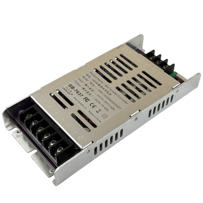 Це джерело живлення підходить для автомобілів, кораблів, електромобілів, нових енергетичних продуктів, світлодіодних електронних вивісок, GPRS, автомобільних аудіосистем та інших енергозберігаючих пристроїв, що стабільно використовують електроживлення. Має низьку пульсацію та шум на виході, захист від короткого замикання, природне охолодження та алюмінієвий корпус.