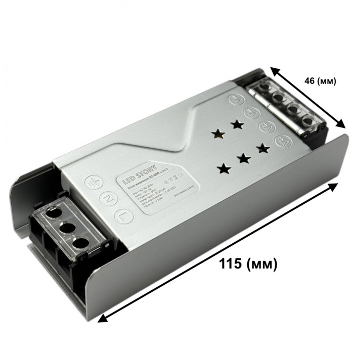 Негерметичний блок живлення виконаний у захищеному від електромагнітних перешкод металевому корпусі, а також має захист від перепадів напруги та короткого замикання. Все це забезпечує стабільне живлення світлодіодної стрічки. Гарантуючи тривалий термін експлуатації.