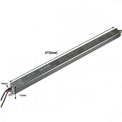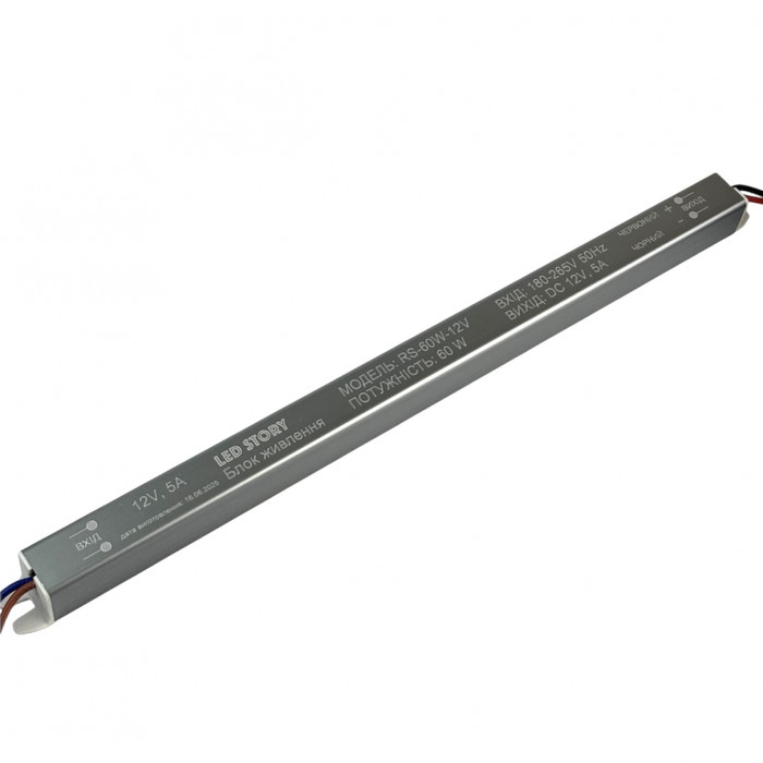 Ультратонкий блок живлення на 12 Вольт, призначений для підключення світлодіодних стрічок та іншого низьковольтного обладнання в умовах сухих приміщень. При максимальній потужності 60 Вт і струмі до 5А, цей пристрій забезпечує стабільну роботу кількох ділянок led-підсвітки, не допускаючи мерехтіння чи перегріву.