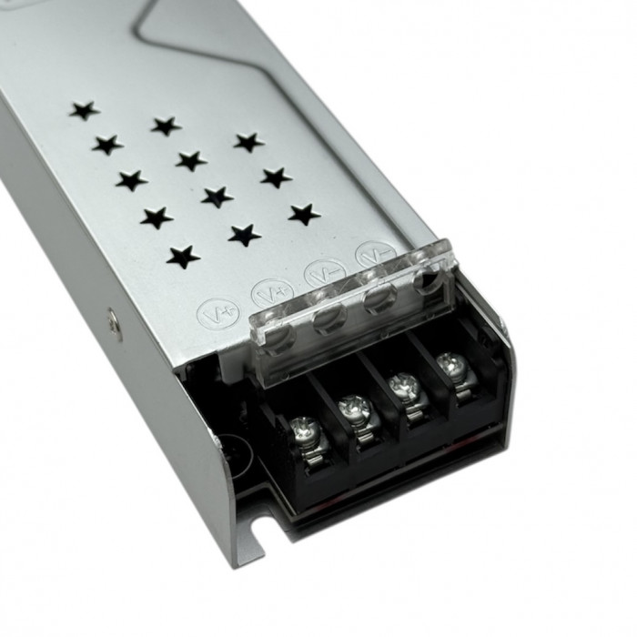 Негерметичний блок живлення, призначений для використання в системах світлодіодного освітлення з робочою напругою 12 Вольт при максимальній потужності 150 Ватт. В силу класу вологозахисту IP20 модель може експлуатуватися виключно всередині приміщень, що опалюються, при вхідній напрузі 180-265 Вольт і силі струму не більше 12,5 Ампер.