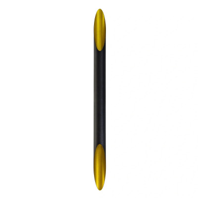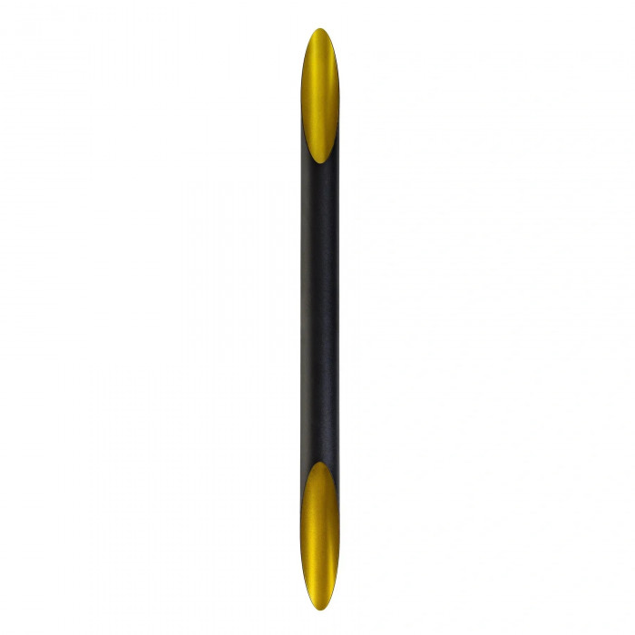 Цей настінний світильник з подовженим металевим корпусом у глибокому чорному кольорі з золотистими внутрішніми акцентами — справжній витвір у стилі сучасного мінімалізму. Висотою 620 мм і діаметром лише 40 мм, він виглядає як елегантний декоративний штрих, здатний перетворити навіть найпростішу стіну на частину дизайнерського задуму.