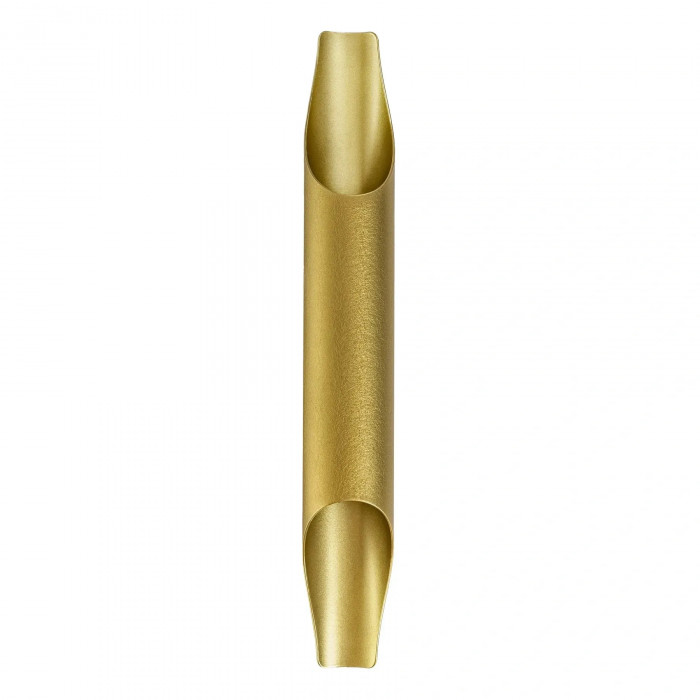 Циліндрична форма плафону забезпечує м’яке розсіювання світла вгору та вниз, створюючи ефект затишного підсвічування. Такий світильник ідеально пасує для зон відпочинку, спальні, вітальні або атмосферного закладу. Завдяки повністю монохромному золотому виконанню, він виглядає як дизайнерський елемент навіть у вимкненому стані.
