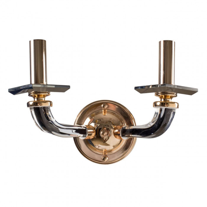 Це бра — як пара елегантних штрихів на полотні інтер’єру. Два симетричні світлові елементи, що нагадують свічки, піднімаються з вигнутих металевих консолей, створюючи образ, сповнений класичної гармонії. Поєднання золота й бронзи додає глибини, а металевий каркас гарантує довговічність і візуальну чіткість.
