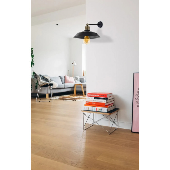Світильник сумісний із найпоширенішим типом ламп — E27, а тому ви самі обираєте характер освітлення: від м’якого теплого сяйва до більш холодного функціонального світла. Завдяки відкритому плафону, бра забезпечує максимально ефективне освітлення, а світло лампи ефектно підкреслює індустріальну стилістику.