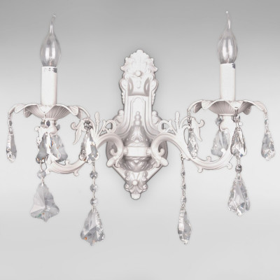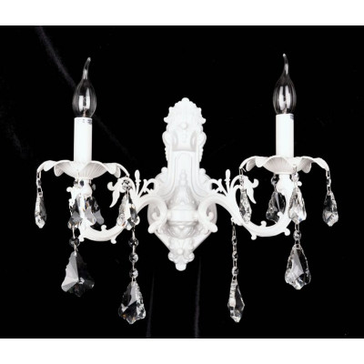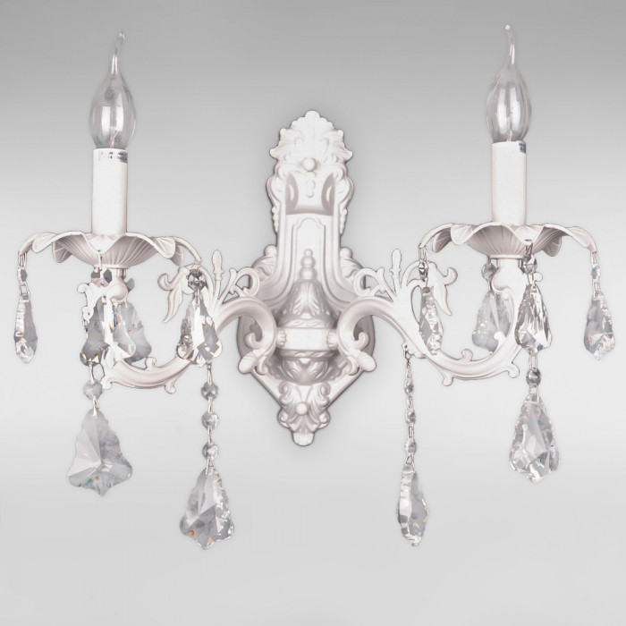 Класичне настінне бра з двома джерелами світла — елегантне рішення для інтер’єру з акцентом на декоративність. Білий металевий каркас із витонченими вигнутими елементами доповнений кришталевими підвісами, що створюють ефект м’якого мерехтіння. Підтримує лампи типу E14 потужністю до 60 Вт (розжарювання або LED). Габарити: висота — 270 мм, ширина — 330 мм, довжина — 230 мм. Напруга: 220–240 В. Ступінь захисту IP20 — для внутрішніх приміщень. Ідеально пасує до спальні, вітальні чи коридору, додаючи простору шарму та світлової глибини.