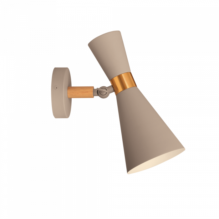 Цей настінний світильник — ідеальний баланс між стриманим кольором і виразним дизайном. Його матове сіре покриття додає глибини та сучасності, а теплі акценти з натурального дерева та золота створюють гармонійний контраст і привносять у простір нотки вишуканості.
