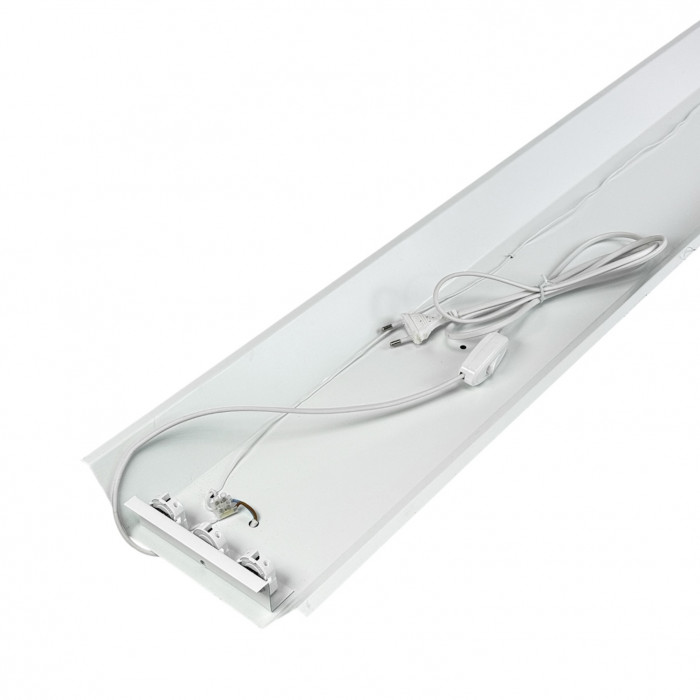 Світильники даного типу можна з’єднувати між собою в єдину лінію, створюючи освітлення необхідної довжини для великих приміщень. У комплекті постачається кабель живлення довжиною 1,5 м із вбудованим вимикачем та стандартною вилкою для підключення до мережі 220 В.