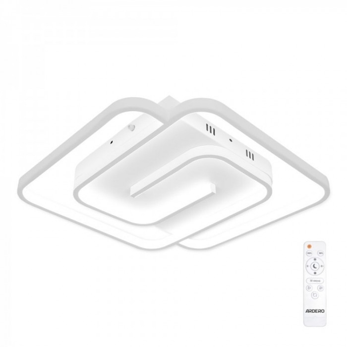 Сучасний LED світильник квадратної форми — це стильне рішення для інтер’єру, де важливі геометрія, комфорт і технологічність. Два перехрещені світлові контури з м’яким силіконовим розсіювачем створюють ефектний об’ємний акцент. Потужність 75 W і світловий потік 3550 lm забезпечують якісне освітлення площі до 20 м². Світильник підтримує діммування, має функцію нічника та керується дистанційним пультом. Три режими кольорової температури (3000K–6000K) дозволяють змінювати атмосферу — від теплого затишку до яскравого денного світла. Матеріали: метал і силікон, ступінь захисту IP20, розмір 420×420×45 мм. Ідеально підходить для спальні, вітальні, кабінету чи дитячої кімнати, де важливі чисті лінії, функціональність і декоративна форма.