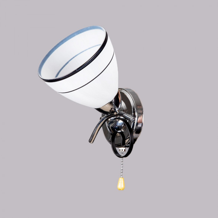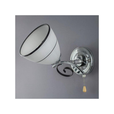 Настінне бра з одним джерелом світла — лаконічне та естетичне рішення для зонального освітлення у сучасному інтер’єрі. Хромований металевий корпус із витонченими чорними акцентами поєднується зі скляним конусоподібним плафоном, що додає світильнику геометричної чіткості та візуальної легкості. Такий дизайн гармонійно впишеться як у мінімалістичні, так і в класичні простори.