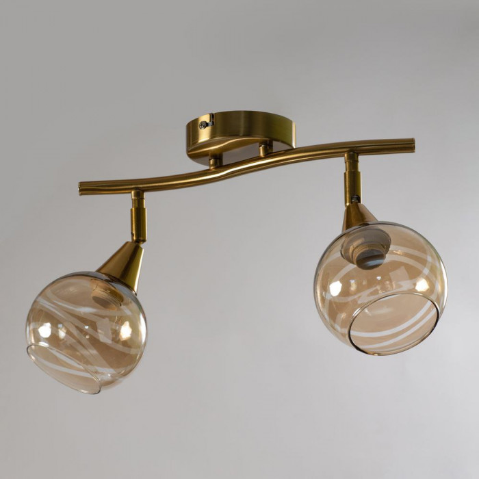 Стельова люстра з двома поворотними плафонами — елегантне рішення для сучасного інтер’єру. Каркас кольору антична бронза гармонійно поєднується зі скляними плафонами, прикрашеними візерунками, створюючи теплий і водночас стильний акцент у просторі. Завдяки поворотному механізму ви можете змінювати напрямок світла, що робить світильник ідеальним для зонального освітлення — у вітальні, спальні, кухні чи передпокої.
