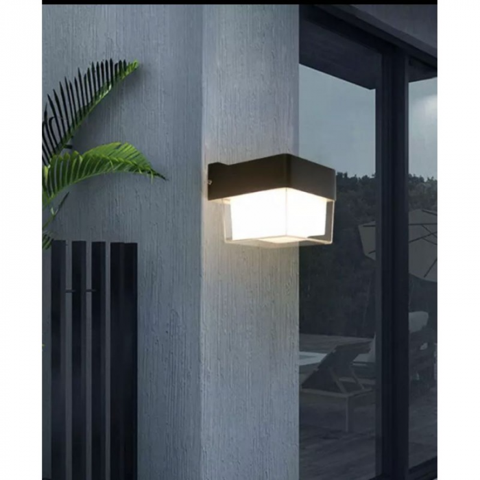 Цей світильник — приклад того, як простота може бути виразною. Його компактний корпус (100×85×95 мм) поєднує алюміній і пластик, створюючи міцну, але легку конструкцію з матовим верхом, що м’яко розсіює світло. Тепле сяйво (3000K) формує затишну атмосферу, не ріже очі, а підкреслює архітектурні деталі фасаду.