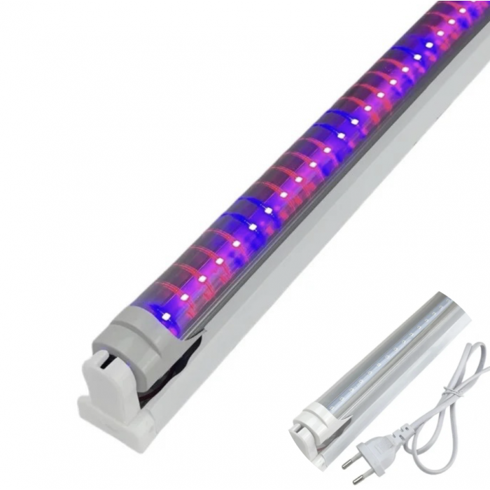 Світильник Т8 1200 мм з фітолампою 4 червоних та 2 синіх використовуються для покращення росту рослин. Фітолампи світлодіодні, відрізняються від інших, економічністю експлуатації, завдяки низькому енергоспоживанню та тривалому терміну служби. Алюмінієвий корпус сприяє її ефективному охолодженню а прозорий полікарбонатний розсіювач мінімальним втратам світлового потоку. Такі світильники екологічно безпечні – вони не містять ртуть та не вимагають спеціальних умов утилізації. PPFD вимірювали на висоті 17–20 см від верхівок рослин — саме в зоні активного поглинання світла під час роботи фітолампи.