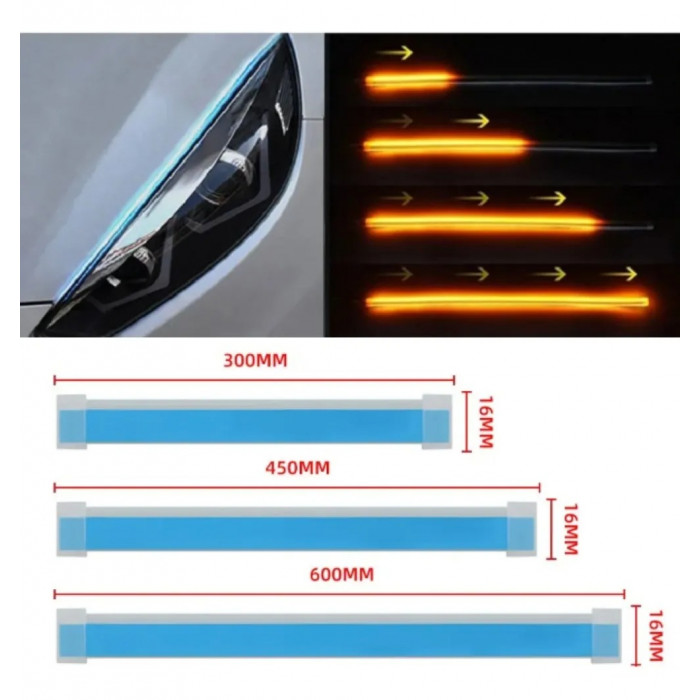 Гнучкі світлодіодні денні ходові вогні (DRL) зі скануючим ефектом — це стильне рішення для автомобільного тюнінгу, яке надає авто сучасного та динамічного вигляду. Світлодіодна стрічка імітує заводський ефект підсвічування фар та підвищує помітність автомобіля на дорозі вдень і вночі.
