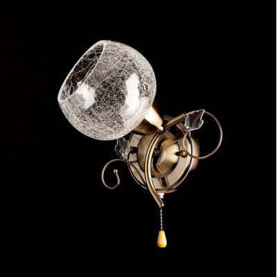 Настінне бра на 1 джерело світла — компактний та елегантний світильник у класичному стилі з металевим каркасом бронзового кольору та скляним плафоном. Оснащене шнурковим вимикачем, працює від мережі 220–240 В, розраховане на світлодіодну лампу з цоколем E27. Кількість джерел світла — 1, матеріал каркаса — метал, плафона — скло, ступінь захисту IP20. Підходить для освітлення спальні, вітальні, коридору чи кабінету.