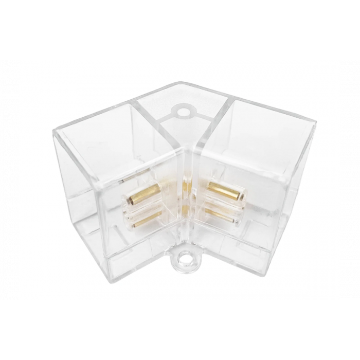 Прозорий кутовий конектор на 120° призначений для з'єднання лінійних модульних світильників у багатосекційні конструкції під заданим кутом. Ідеально підходить для створення фігурних світлових рішень у приміщеннях — у формі "трикутників", "зірок", "стрілок" тощо.