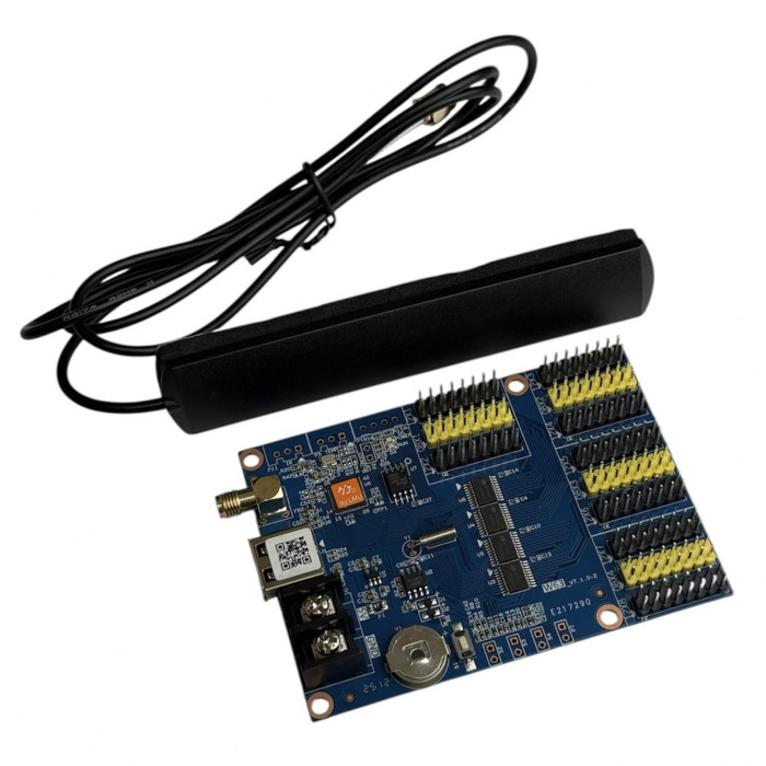 Контролер для LED-екранів HD-W63 призначений для рухомого LED рядка і забезпечує передачу інформації на вивіску через Wi-Fi або USB з'єднання. Він сумісний з монохромними та двоколірними світлодіодними модулями. Плата підтримує відображення різноманітного контенту, такого як текст, анімації, Gif-картинки та 3D текст, а також може відображати Час, Аналоговий годинник та Температуру. Крім того, пристрій має вбудований таймер та зворотний відлік. Користувачам доступний зручний інтерфейс програмного забезпечення, а налаштування можна виконувати як за допомогою ПК, так і через смартфон. Простота експлуатації робить цю карту керування привабливим вибором для різноманітних додатків з LED вивісками.