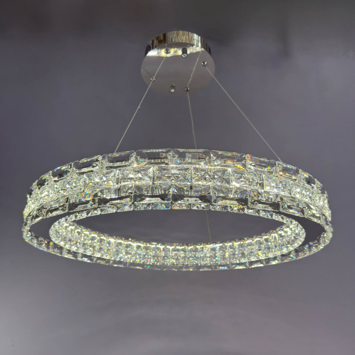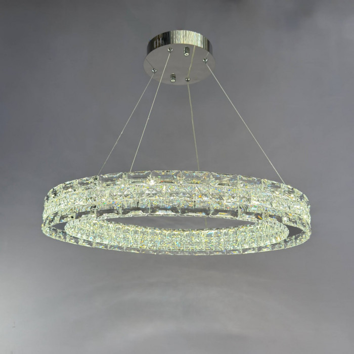 Вишукана кришталева LED люстра з димером — це поєднання розкоші, сучасних технологій та елегантного дизайну. Її сяючий корпус, оздоблений прозорими скляними кристалами, створює неймовірну гру світла, наповнюючи простір блиском і витонченістю. Завдяки потужності 50 Вт та енергоефективним LED-джерелам світла, люстра забезпечує рівномірне освітлення площі до 12 м², залишаючись економною у використанні.