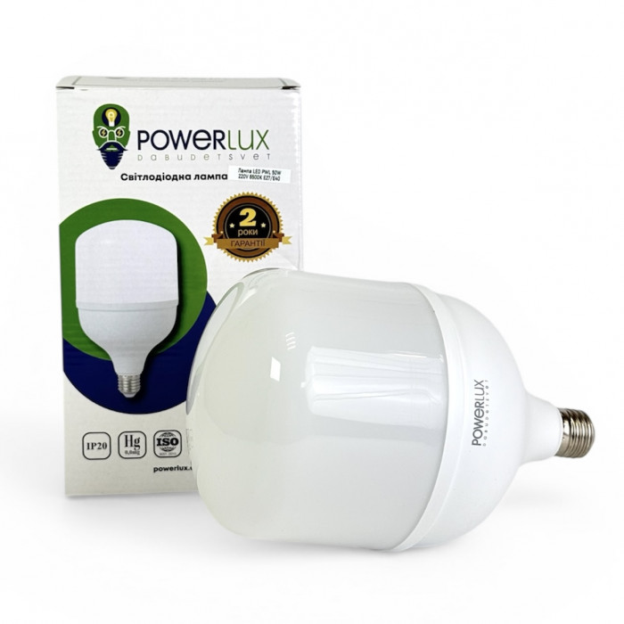 Сучасна енергоощадна світлодіодна лампа, що забезпечує потужний світловий потік при мінімальному споживанні електроенергії. Споживаючи лише 50 Вт, вона ефективно замінює традиційні лампи значно більшої потужності, дозволяючи суттєво зменшити витрати на освітлення.