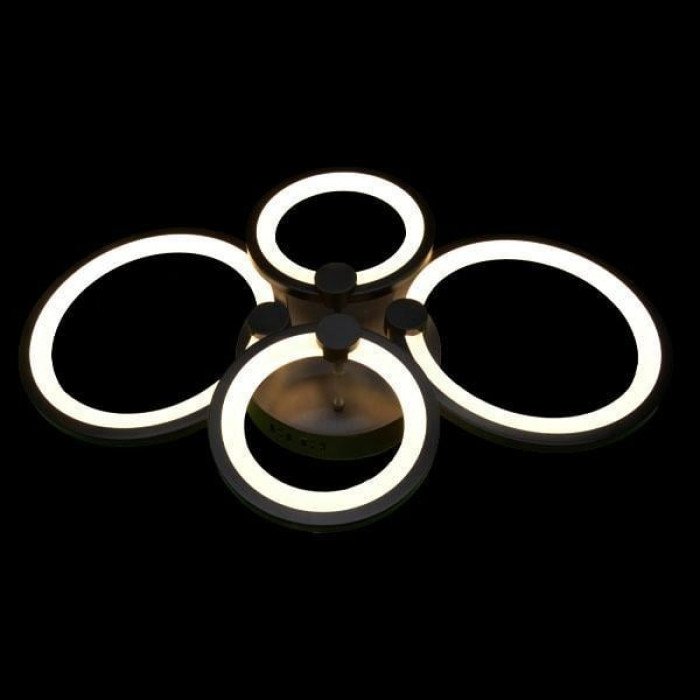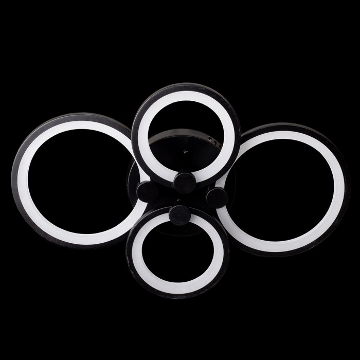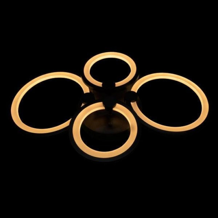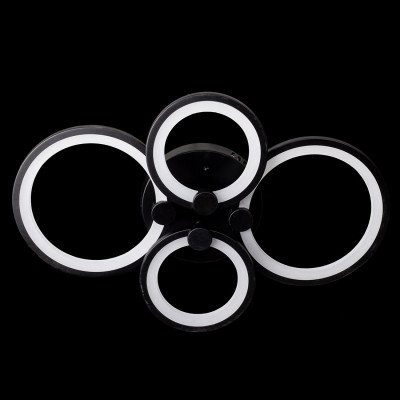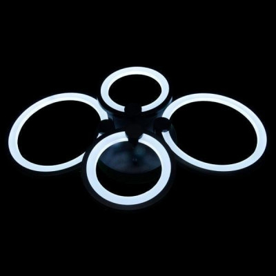 Світлодіодна люстра з чотирма кільцями в чорному — це акцентне освітлення з графічним характером. Матовий металевий корпус поєднується з акриловими розсіювачами, створюючи чітку геометрію світла. Потужність 112 Вт забезпечує інтенсивне освітлення для просторих приміщень.