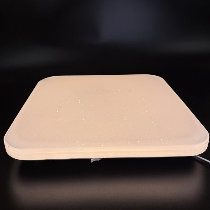Лаконічна форма в поєднанні з нейтральним кольором розсіювача органічно впишеться в будь-який інтер'єр, підійде під будь-яку стелю (бетонну, накладну, гіпсокартонну) і пасує під будь-який колір покриття стелі. Висота люстри ідеальна для невисоких стель, а пульт управління, що йде в комплекті до люстри, робить її бажаною в будь-якій спальні, адже змінювати яскравість, колір світіння, вмикати та вимикати люстру за його допомогою можна, не встаючи з ліжка.