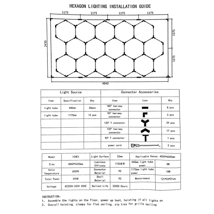 Світильник оснащений двома точками підключення: «рама» і «соти» можуть працювати незалежно одна від одної.