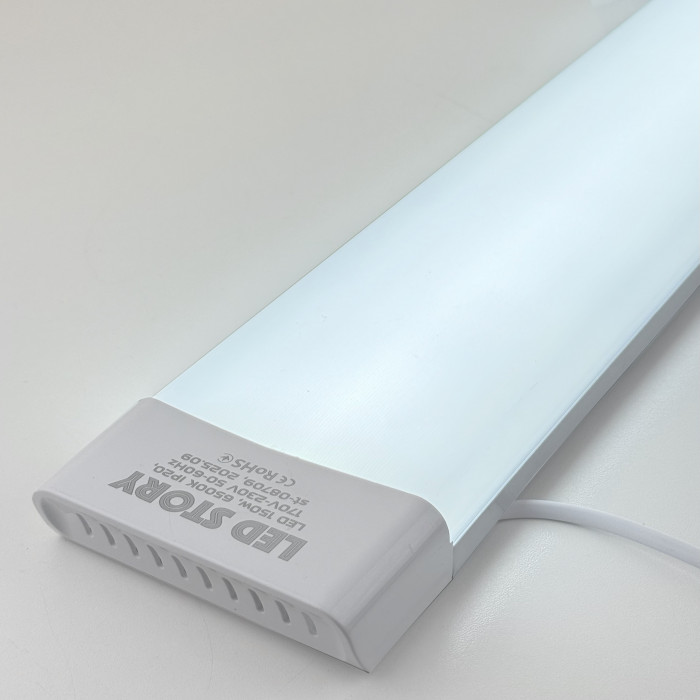 Лінійний лед світильник 1,2м 150W 13500Лм 6500K - це світильник високої потужності. При потужності 150 Вт його світловий потік становить 12 000 Лм, що дозволяє ефективно освітлювати приміщення великої площі максимально якісно. Температура світла 6500K відповідає холодному білому світлу яке ідеально підходить для використання світильника в великих адміністративних приміщеннях, торгових залах, складських, виробничих та підсобних приміщеннях, промислових теплицях тощо.