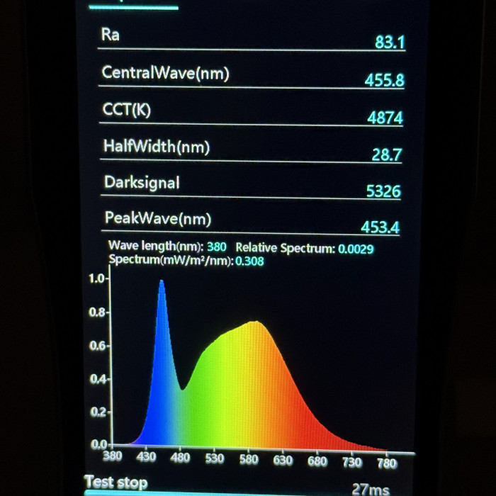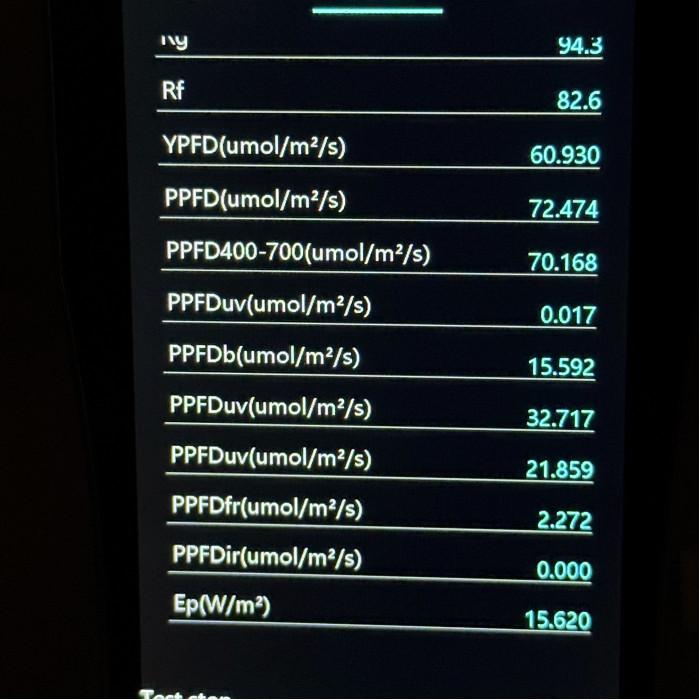 Лінійний світильник Led Story Prismatic довжиною 120 см, потужністю 52 Вт і колірною температурою 5000K – це освітлювальний прилад, призначений для створення яскравого та рівномірного освітлення в різних приміщеннях. PPFD вимірювали на висоті 17–20 см від верхівок рослин — саме в зоні активного поглинання світла під час роботи фітолампи.