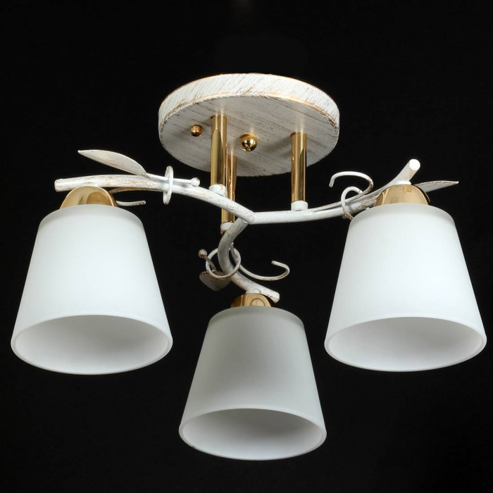 Ця декоративна стельова люстра — справжня знахідка для інтер’єру, де важлива ніжність, затишок і природна естетика. Білий металевий каркас із витонченими гілочками та листям додає простору легкості, а три матові скляні плафони м’яко розсіюють світло, створюючи теплу атмосферу без різких тіней.