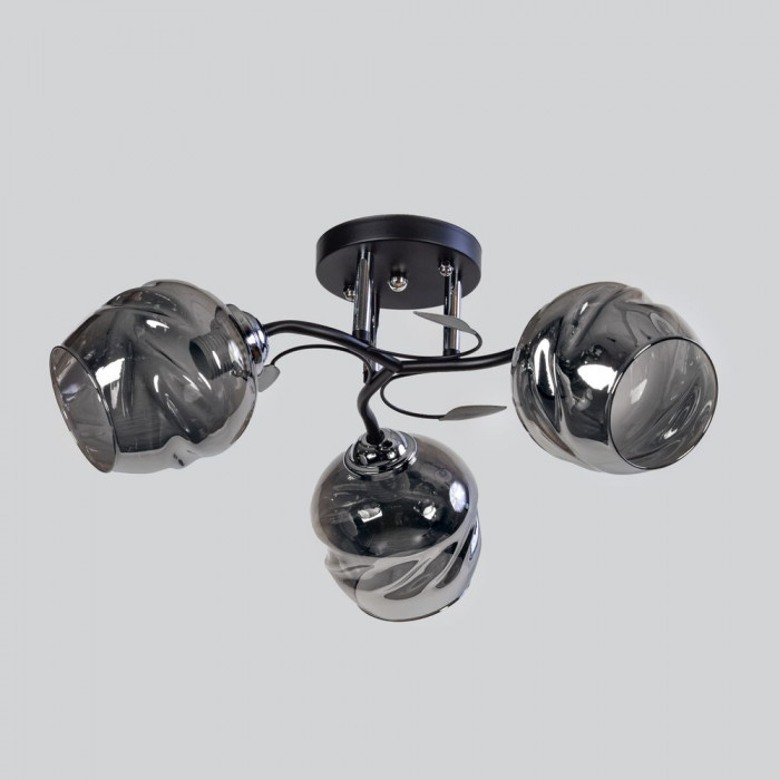 Люстра стельова на 3 плафони — елегантна геометрія та насичене світло. Плавні обриси трьох матових скляних плафонів, строго чорний металевий каркас з хромованими акцентами — усе це створює враження, що світло вишукано вплетене в архітектуру інтер’єру. Люстра діаметром 46 см із висотою 22 см ідеально підходить для спалень, віталень, передпокоїв чи їдалень, де потрібно ефектне, але стримане рішення.