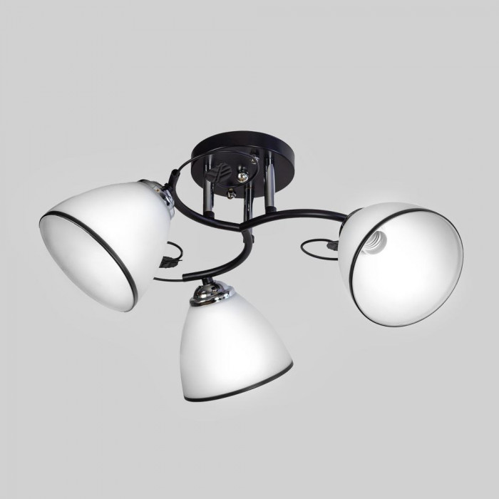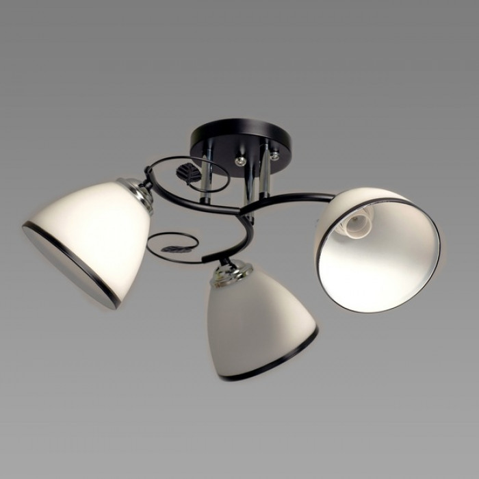 Матові скляні плафони з темним обрамленням не лише вдало розсіюють світло, а й стають стильним декоративним елементом. Люстра розрахована на три лампи з цоколем E27, тож ви легко зможете обрати між лампами розжарювання, LED або енергозберігаючими.