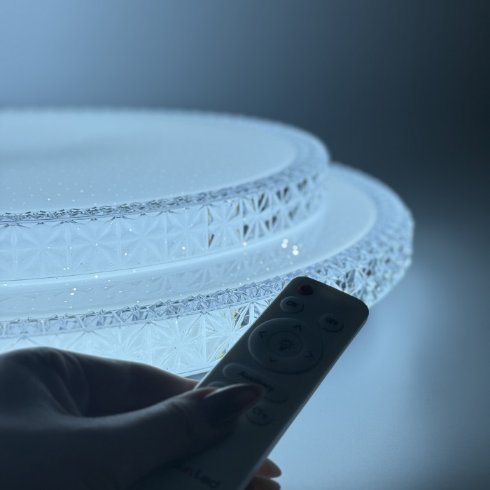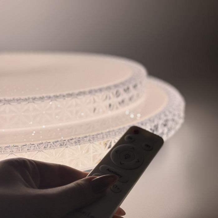 За допомогою пульта дистанційного керування ви можете плавно регулювати яскравість і змінювати колірну температуру світла від теплого (3000 К) до холодного (6500 К). Перемикання режимів кольору також доступне з настінного вимикача, що робить користування максимально зручним.
