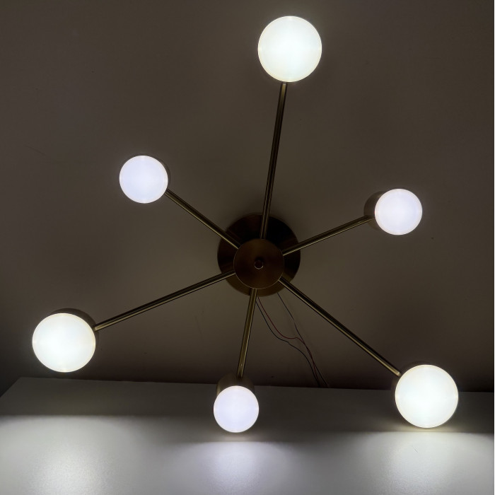Стельова LED люстра 72W на 6 модулів у кольорі бронза — яскравість і комфорт під контролем. Сучасна світлодіодна люстра з металевим каркасом у теплому бронзовому відтінку стане стильним акцентом вашого інтер’єру. Вона ідеально підходить для просторих кімнат завдяки шести потужним LED-модулям, які забезпечують рівномірне та яскраве освітлення. 72 Вт енергоефективної потужності — це світло, еквівалентне традиційним лампам потужністю до 576 Вт, що гарантує достатнє освітлення площі до 18 м². Завдяки вбудованому димеру та трьом режимам світла (теплий, нейтральний, холодний) ви зможете створити саме ту атмосферу, яка вам потрібна.