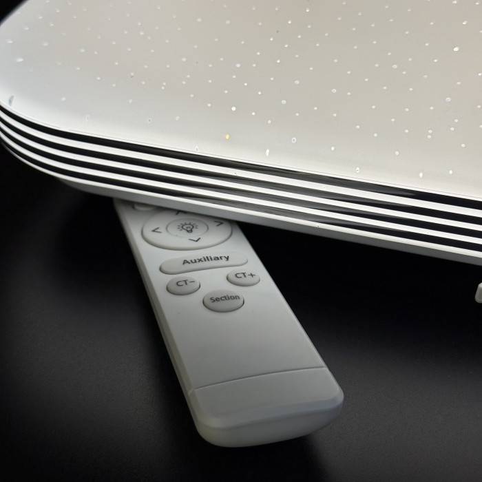 Призначена для використання у житлових та офісних приміщеннях світлодіодна люстра квадратної форми підійде для встановлення у приміщеннях середньої та великої площі, забезпечивши бажаний рівень освітлення простору для комфортного перебування людей протягом тривалого часу. Основна перевага світильника полягає у можливості регулювання температури світлового потоку з пульта – від теплого до холодного білого також можна змінювати яскравість під ваші потреби.