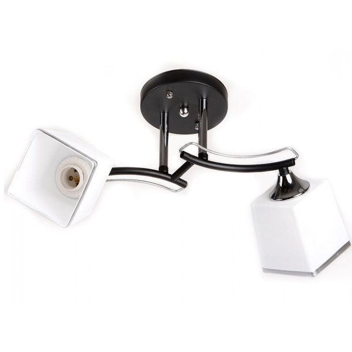 Два скляні плафони з чіткими лініями розміщені на вигнутому каркасі з чорного металу з хромованими деталями — ця модель виглядає як графічна композиція, що оживає при ввімкненні. Світло м’яко проходить крізь скло, створюючи акценти без зайвої яскравості. Ідеальна для сучасного інтер’єру, де важлива чистота форм і точність деталей.