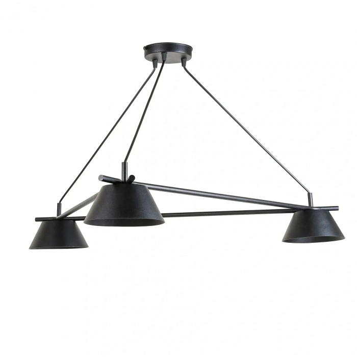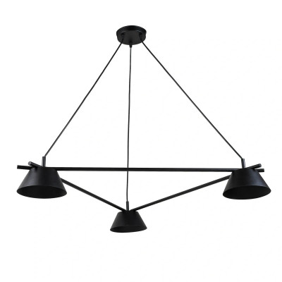 Сучасна підвісна люстра GX53 із трьома конусними плафонами — це лаконічне поєднання мінімалізму, скандинавської стриманості та легких ноток лофту. Три металеві плафони конусної форми (Ø160 мм, висота 80 мм) утворюють виразну геометричну композицію, що забезпечує м’яке рівномірне освітлення без засліплення. Світильник гармонійно підходить для кухні, їдальні, коридору, вітальні, спальні, дитячої, а також для стильних інтер’єрів кафе чи ресторанів.