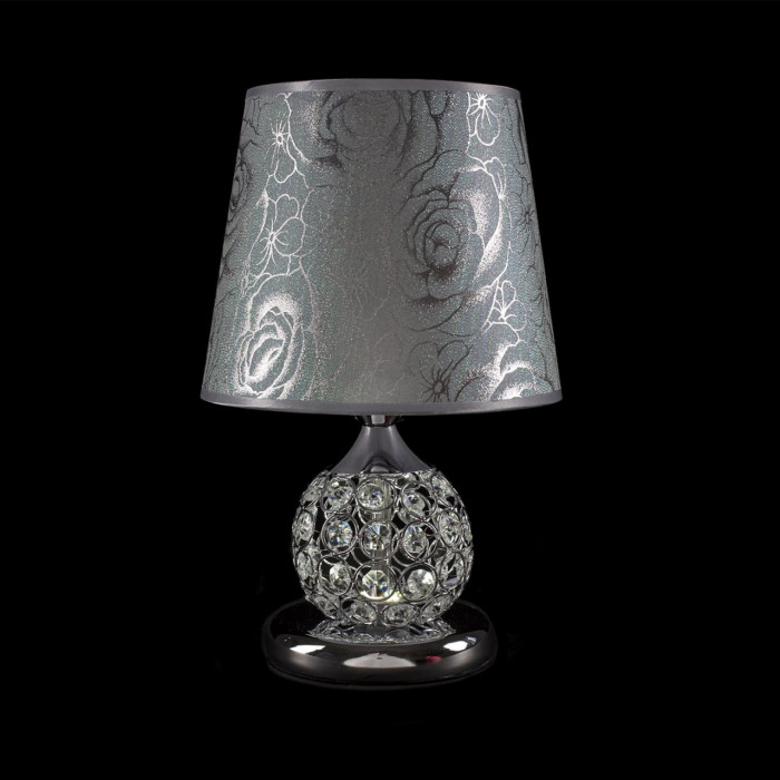 Настільна лампа з текстильним абажуром і LED-підсвіткою — елегантний акцент для класичного інтер’єру. Модель поєднує декоративний текстильний плафон із металевою основою хромового кольору, прикрашеною кристалічними елементами. Абажур має витончену фактуру з флористичним візерунком, що додає лампі вишуканості. Вбудована LED-підсвітка в основі створює м’яке фонове світло, а основне джерело — лампа з цоколем E27 — забезпечує функціональне освітлення.