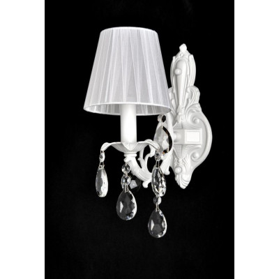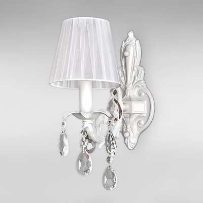 Вишукане настінне бра в класичному стилі — ідеальний вибір для створення затишної та елегантної атмосфери у вашому домі. Біла арматура зі стильним текстильним абажуром гармонійно поєднується з прозорими акриловими підвісками, які м’яко переливаються у світлі, додаючи простору розкоші. Світильник чудово пасує до спальні, вітальні, передпокою чи будь-якого класичного інтер’єру. Завдяки компактним розмірам та настінному монтажу він не займає багато місця, але при цьому стає виразним елементом декору.