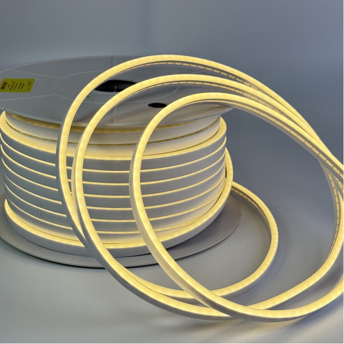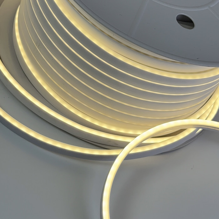Нейтральний білий LED неон (4000 K) зі світлодіодами SMD 2835 та щільністю 120 LED/м поєднує чисте світло та гнучкість конструкції. Компактний корпус 6×12 мм з силікону з домішками ПВХ дозволяє створювати будь-які форми, написи та декоративні елементи, а можливість різки через 1 см (1 LED) забезпечує точне підлаштування довжини. Потужність 8 Вт/м, світловий потік 20–22 лм/LED, кут розсіювання 120° і CRI 80% гарантують рівномірне, природне світло для різних проєктів. Стрічка ідеально підходить для офісів, житлових приміщень, торгових зон, кафе та ресторанів, а також для вивісок, рекламних конструкцій, ландшафтного дизайну та декоративних інсталяцій. Завдяки IP65 та температурному діапазону від -25°C до +40°C стрічка надійно працює в будь-яких умовах, забезпечуючи довговічне, стильне та ефективне освітлення.