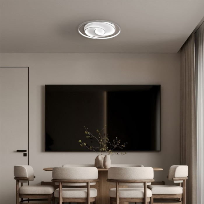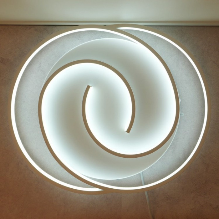 LED світильник овальної форми — це сучасне рішення для стильного інтер’єру, що поєднує декоративність і функціональність. Спіральна конструкція з м’яким силіконовим розсіювачем створює ефектний візуальний акцент, а білий корпус додає легкості та універсальності. Потужність 75 W і світловий потік 3550 lm забезпечують якісне освітлення для площі до 20 м². Світильник підтримує діммування, має функцію нічника та керується дистанційним пультом. Три режими кольорової температури (3000K–6000K) дозволяють змінювати атмосферу — від теплого затишку до яскравого робочого світла. Матеріали: метал і силікон, ступінь захисту IP20, розмір 500×420×45 мм. Ідеально підходить для вітальні, спальні, кабінету чи зони відпочинку.