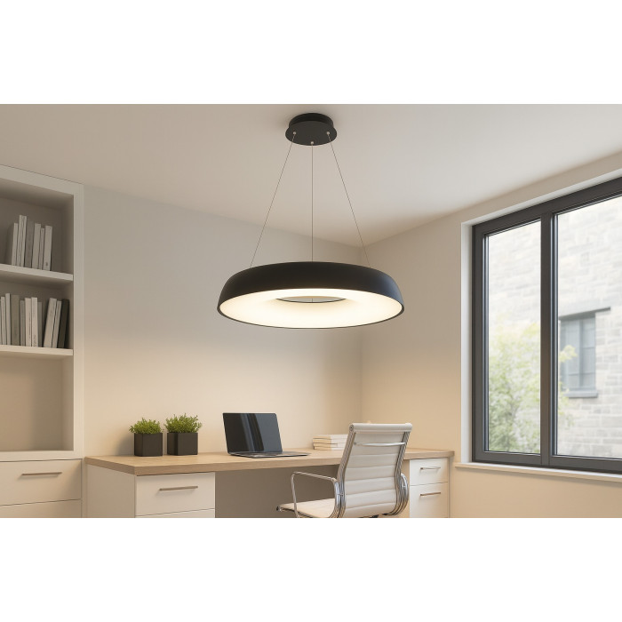 Підвісна LED-люстра в чорному корпусі створена для інтер’єрів, де світло має характер. Контрастний чорний колір надає моделі виразності та робить її помітним дизайнерським елементом, який вдало підкреслює сучасну архітектуру простору — від лофту до мінімалізму та модерну.