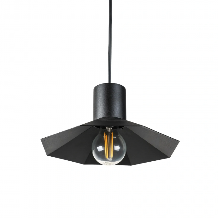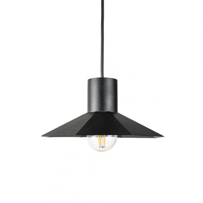 Стильний підвісний світильник із металевим конусним плафоном стане яскравим декоративним елементом будь-якого інтер’єру. Плафон діаметром 240 мм і висотою 120 мм має виразні грані, які відбивають світло під різними кутами, створюючи ефект багатошарового та живого освітлення.