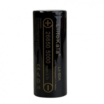 Аккумулятор LiitoKala Lii-50A 5000 mAh 26650 - высокотоковый литий-ионный аккумулятор форм-фактора 26650 с повышенной ёмкостью, плоским плюсовым контактом, без защиты. По химическому составу это INR аккумулятор 26650 (NMC, литий-марганцевый никель) - катод данных аккумуляторов выполнен из никеля, кобальта и марганца (Li(NiCoMn)O2). Добавление в состав аккумулятора марганца и никеля делает его безопасным, высокоёмким и высокотоковым, способным быстро отдавать энергию. Благодаря наличию марганца в составе аккумулятора он безопасен, имеет высокою токоотдачу и низкую температуру работы, никель обеспечивает низкое сопротивление и высокую энергию. Эта модель LiitoKala lii-50A 5000 mAh из линейки производителя имеет наибольшую ёмкость в сочетании с высокой токоотдачей выше 15А. С такими характеристиками это лидер среди аккумуляторов в форм-факторе 26650.