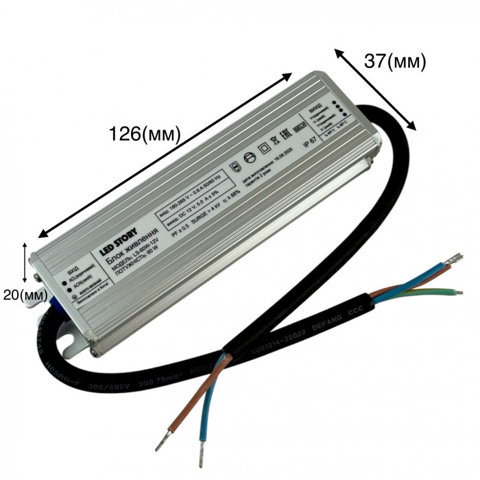 Герметичный блок питания для светодиодных лент и прочего низковольтного оборудования с рабочим напряжением 12 Вольт. Блок питания имеет класс влагозащиты IP67, что делает его подходящим для применения не только внутри помещений, но и под открытым небом без какой-либо дополнительной защиты на протяжении всего года.