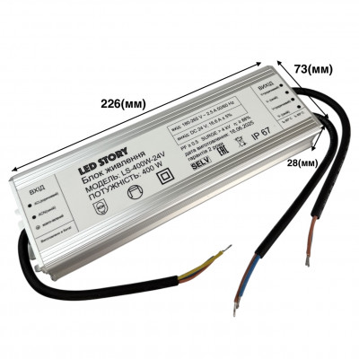 Блок питания для led ленты 24В 400Вт 16.6А IP67 герметичный LED STORY Profi
