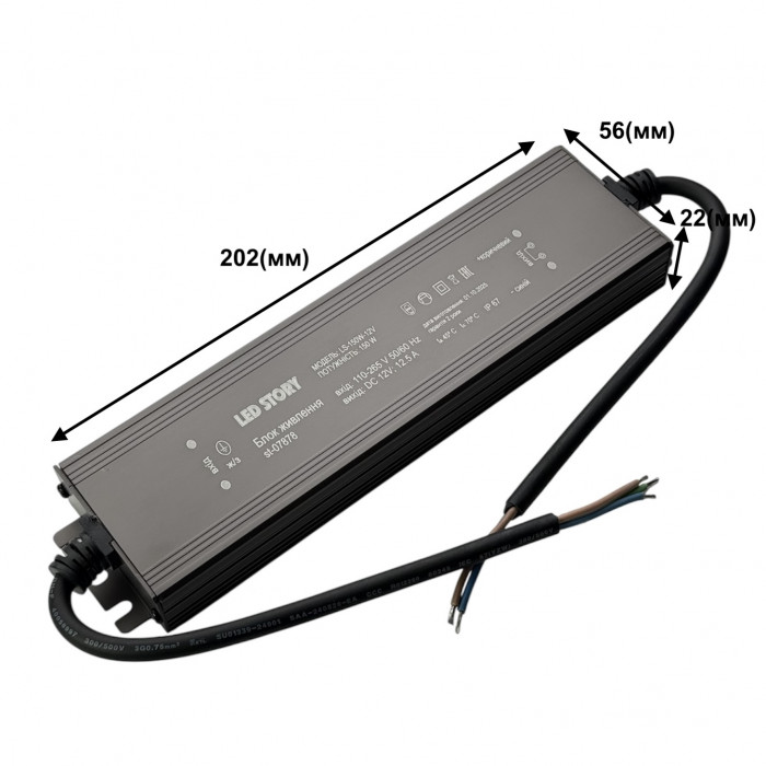 Выполненный в герметичном металлическом корпусе блок питания для светодиодных лент с рабочим напряжением 12 Вольт. БП имеет мощность 150Вт, а также класс влагозащиты IP67. Это дает возможность использовать его снаружи помещений на протяжении всего года без какой-либо дополнительной защиты.