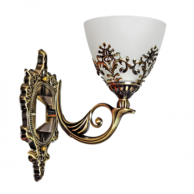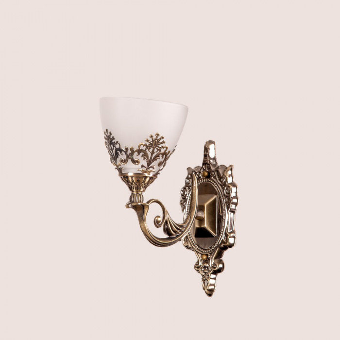 Этот светильник сочетает в себе функциональность и декоративность в компактном формате. Металлический каркас в теплой бронзе с изящным рельефом придает интерьеру глубины и структуры. Матовый стеклянный плафон с узором обеспечивает мягкий рассеянный свет, комфортный для глаз.