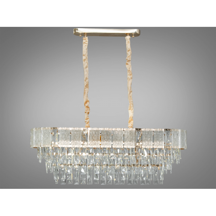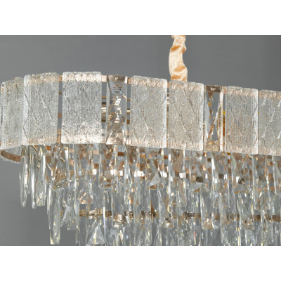 Стильная овальная люстра с каскадными стеклянными подвесками станет акцентом любого интерьера – от классики до современного стиля. Благодаря 10 патронам E14 люстра создает яркое, мягкое освещение, а регулируемая высота (от 40 до 85 см) позволяет адаптировать ее к высоте потолка. Прочный металлический каркас с гальваническим покрытием обеспечивает долговечность, а прозрачные стеклянные элементы эффектно преломляют свет. Монтируется на надежную монтажную планку. Идеально подходит для гостиной, столовой или зала.