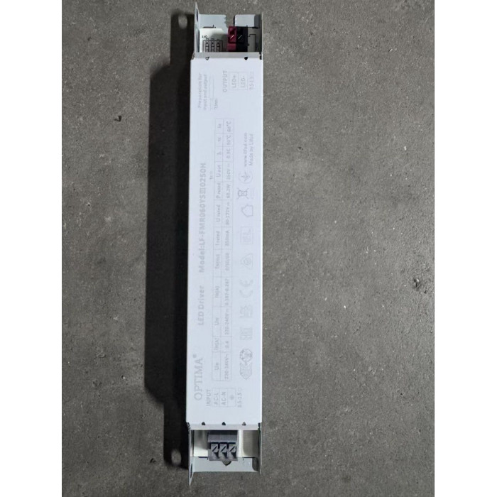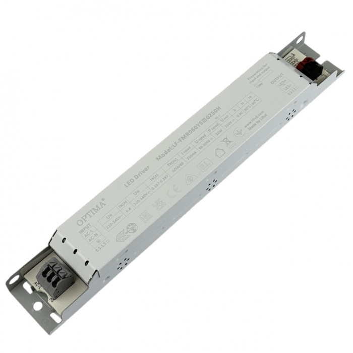 Драйвер работает в заданном режиме постоянного тока 250 мА, что гарантирует простую и надежную эксплуатацию без дополнительных настроек. Он поддерживает выходную мощность до 60 Вт, поэтому может использоваться не только для стандартных 40-ваттных светильников длиной 1200 мм, но и для более мощных конфигураций – например, при желании повысить яркость или освещаемую площадь.