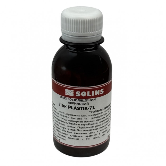 Акриловый лак PLASTIK 71 — высококачественный электроизоляционный материал для защиты печатных плат и электронных изделий от негативных воздействий. Обеспечивает надежную защиту от влаги, химии, механических повреждений, а также изолирует проводники и компоненты от коротких замыканий и утечек тока. Лак подходит для применения в тяжелых условиях, продлевая срок службы и предотвращая коррозию. Быстро сохнет, позволяет наносить несколько слоев для лучшего покрытия и содержит краситель, видимый под УФ-светом, для контроля нанесения. PLASTIK 71 — универсальное решение для долговечной защиты электронных устройств.