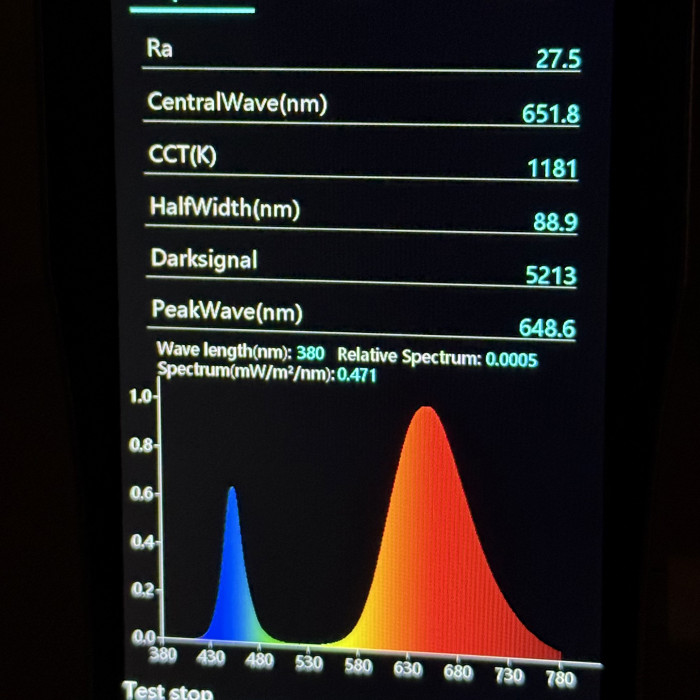 PPFD измеряли на высоте 17-20 см от верхушек растений - именно в зоне активного поглощения света во время работы фитолампы.